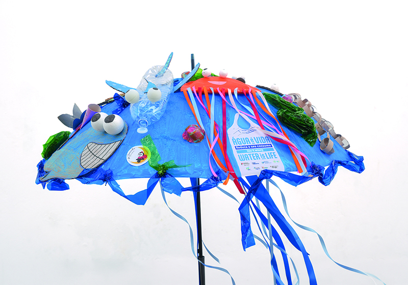 "Heróis do Mar" é uma obra criada por crianças do pré-escolar, que contrasta no guarda-chuva um oceano vivo com os resíduos plásticos que o ameaçam. Escolhido pelas próprias crianças, o projeto gerou tal envolvimento que o tema chegou às conversas em família, provando que pequenas atitudes podem criar grandes ondas de consciência ambiental.
