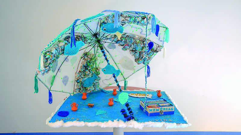 "Mar de Vida" é uma obra criada por pessoas com deficiência do CACI, que recria um cenário de praia poluída com materiais recolhidos durante passeios pela Ria Formosa. Garrafas, tampas e rolhas transformam-se em arte, sensibilizando para a preservação ambiental e promovendo a expressão plástica e a motricidade fina dos participantes.