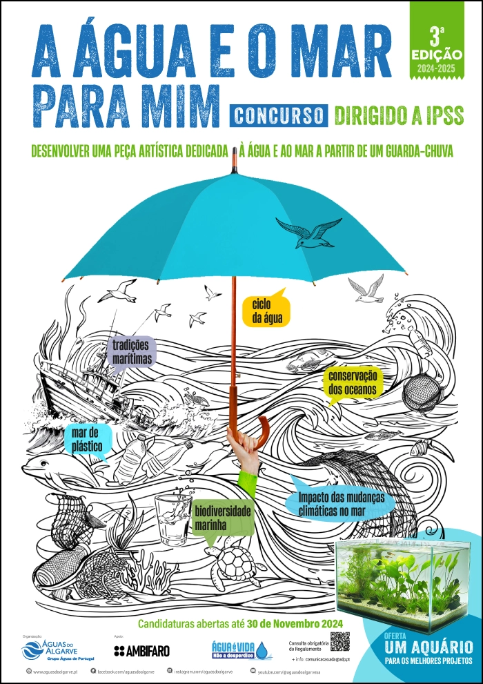 O concurso “A Água e o Mar para Mim” visa promover a criatividade, a inclusão e a conscientização ambiental, convidando instituições sem fins lucrativos que trabalham com pessoas idosas e pessoas com deficiências a participar na criação de obras de arte utilizando chapéus de chuva como base. A temática centra-se na importância da água e do mar, refletindo os desafios ambientais e a relação humana com estes recursos.
